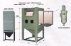 sand blasting machine, will provide technical solution upon clients demand. Technical Data: Enclosure Dimensions: (WxDxH) Work Surface: 1190x1190x1040 (mm) Manual Dia. 700mm tumtable, Max load 50kg Door Dimensions: Electricity Supply: 900x900 (mm) Electrical interlock on door unit. 220/240 volts, single phase, 50Hz Window Unit: Compressed Air Supply: 440x240 (mm) Toughened safety glass. Pressure 7 bar Blast Gun: High performance blast gun Volume 1.5 m³/min and standard nozzie size 9mm. Separator Motor: Dust Collector: Dust collector, dustbag, 220V, 50Hz, 550W and pneumatic cleaning vibrator. Separator Air Flow:8.5 m³/min Weight:500kg Light: 220V, 25W Fluorescent lamp.